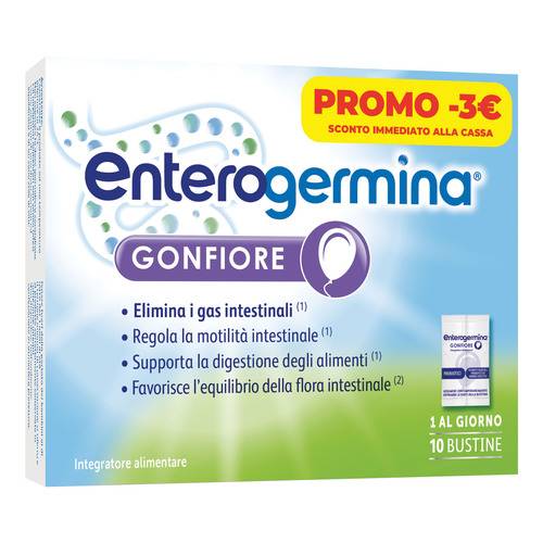 - azione rapida: estratti vegetali (1) di menta e coriandolo, 100% di origine naturale, favoriscono l’eliminazione dei gas e la regolare motilità gastrointestinale, supportando così la digestione degli alimenti. Inoltre, Enterogermina Gonfiore è arricchita con enzimi digestivi;