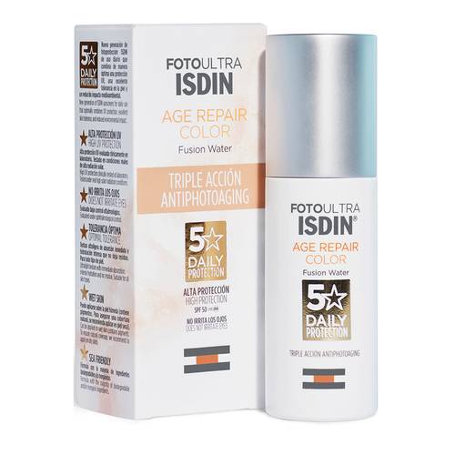 Fotoprotezione viso ultraleggera formulata in fase acquosa che in più ha una triplice azione antiage: protegge con un SPF50, ripara il danno solare accumulato e rigenera la pelle. Anche in versione colorata. Contiene pigmenti colorati che si adattano all’incarnato, uniformando e matificando la pelle.