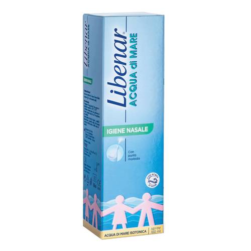 Libenar Acqua di Mare è uno spray con acqua di mare indicato per alleviare la congestione nasale (soluzione isotonica 9 g/l). Spray nebulizzato con getto delicato e punta adatta ai bambini. Consigliato per: Adulti, Bambini e Neonati dai 15 giorni di età. Può essere utilizzato in gravidanza e durante l'allattamento.