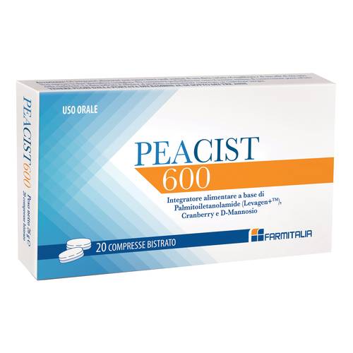 Integratore alimentare a base di Palmitoiletanolamide (Levagen Plus), Artepillina C, Cranberry (Mirtillo rosso) e D- Mannosio. Peacist 600 Attack risulta utile come coadiuvante in caso di infezioni del tratto urinario sia maschile che femminile sia in acuto che nelle forme ricorrenti. Uso orale. Con edulcoranti.