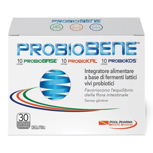 Contiene 10 capsule PROBIOBASE, 10 capsule PROBIOKAL e 10 capsule PROBIOKOS.