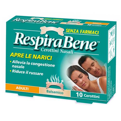 I cerottini nasali RespiraBene, se correttamente applicati sulla superficie del naso, attraverso una semplice azione meccanica e senza l’ausilio di medicinali, permettono immediatamente di respirare meglio. Ogni cerottino nasale è infatti costituito da strisce flessibili che sollevano delicatamente i passaggi nasali offrendo: