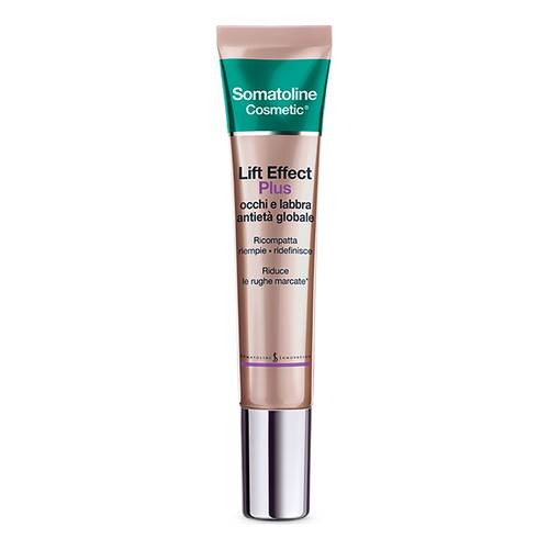 Somatoline Cosmetic® Lift Effect Plus occhi e labbra Ricompatta la pelle e riattiva la vitalità cellulare, riempie conferendo volume e svolge un'azione filler, ridefinisce i tratti del contorno occhi e labbra. Riduce le rughe marcate.