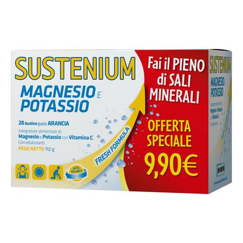 Si consiglia l'assunzione di due buste al giorno. Sciogliere il contenuto di una busta in un bicchiere d'acqua. La formula di Sustenium Magnesio e Potassio si scioglie rapidamente in acqua, senza necessità di essere agitato con un cucchiaio.
